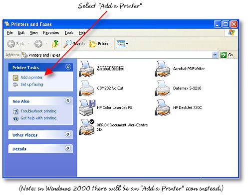 3. Select "Add a Printer" from the category view in Windows XP or double-click the "Add a Printer" icon in other Windows versions.