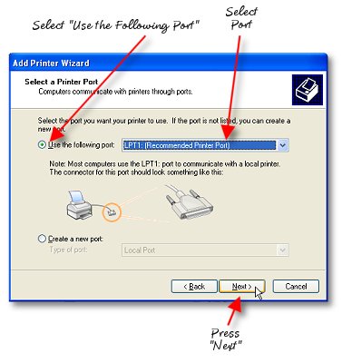 6. Select the Printer Port (usually LPT1) and press "Next."