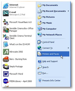 2. Choose "Printers and Faxes" (under "Settings" in Windows 2000)
