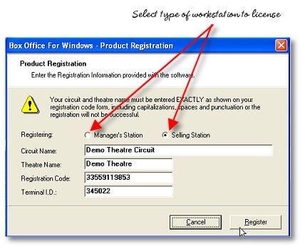 Once you have received your licensing instructions, enter the appropriate information in the registration utility for each individual workstation. Note: Terminal Identity numbers are only entered for Terminal workstations. The Manager's station only needs the remainder of the licensing information.